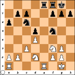 1.e4 e6 2.d4 d5 3.exd5 exd5 4.Nf3 Bd6 5.Bd3 Ne7 6.O-O O-O 7.Re1 Nbc6 8.c3 Bf5 9.Bg5 Qd7 10.Bh4 Rae8