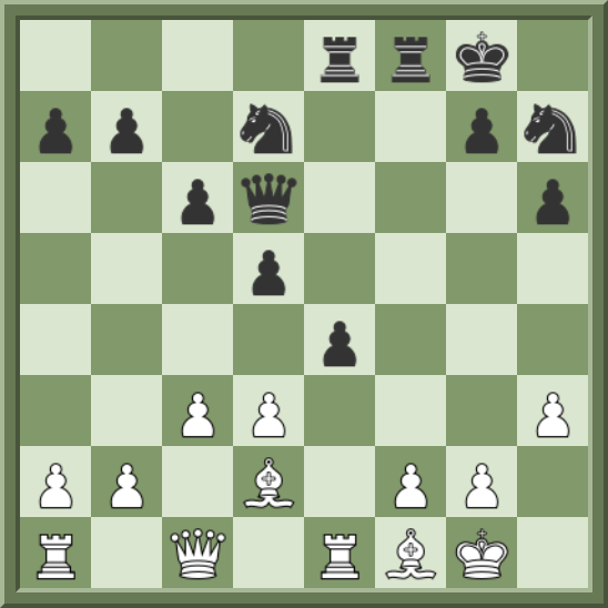 1.e4 e5 2.Nf3 d6 3.h3 f5 4.exf5 Bxf5 5.d3 Be7 6.Be2 h6 7.O-O Nf6 8.Nbd2 O-O 9.Re1 Bh7 10.Bf1 c6 11.Ne4 Nbd7 12.c3 d5 13.Ng3 Qc7 14.Bd2 Rae8 15.Qc1 Bd6 16.Nh4 e4 17.Ngf5 Bxf5 18.Nf5 Nh7 19.Nxd6 Qxd6